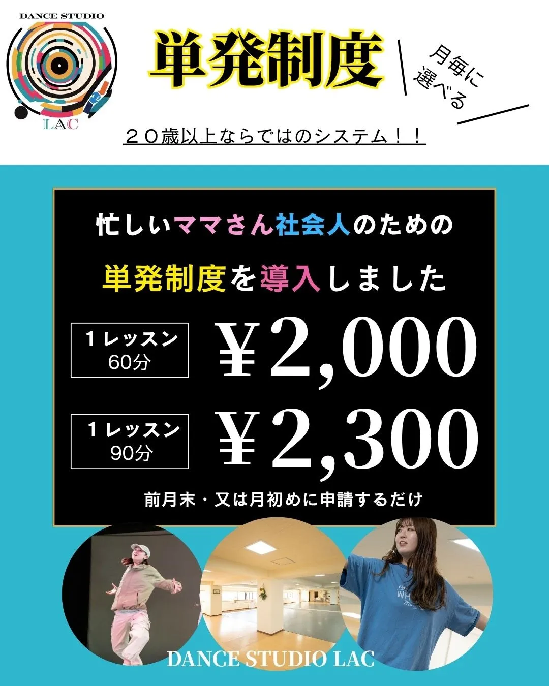 DANCE STUDIO LACでは、プロのレッスンを通いやすい料金で受講可能です。